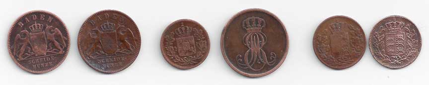 | 117. | Baden: 1 Kr 1865, 1869, KM:242, Bavorsko: 1 Pf 1853, KM:420