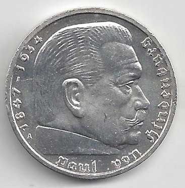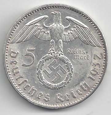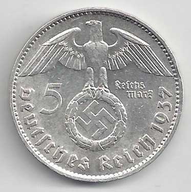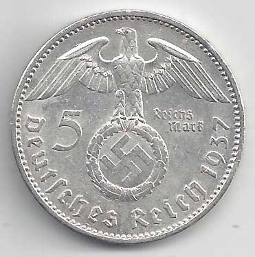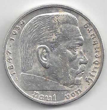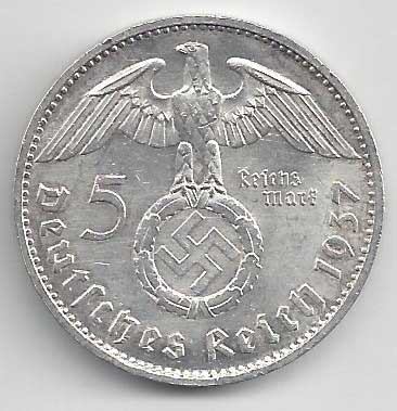 | 138. | 5 Reichsmark 1937 J, KM:94 | 1/1 | 160,- | 160,- |