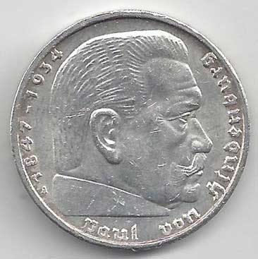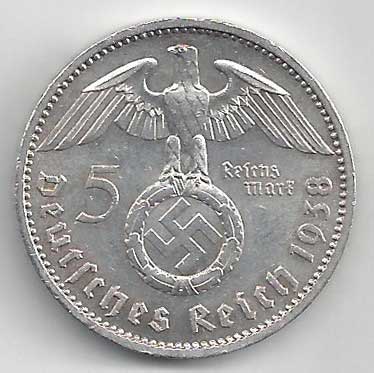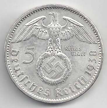 | 139. | 5 Reichsmark 1938 A, KM:94 | 1/1 | 160,- | 160,- |