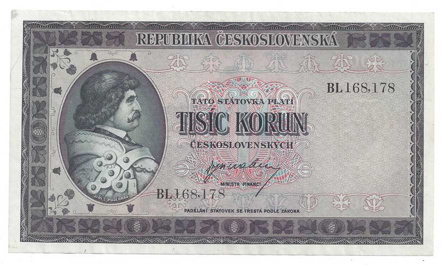 | 306. | 1000 Kč bl.(1945),sér.BL, H:76a S1, jemně zvln.okraje, skvrnka v rohu | N- | 600,- | 1100,- |