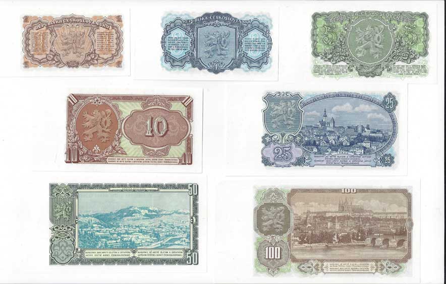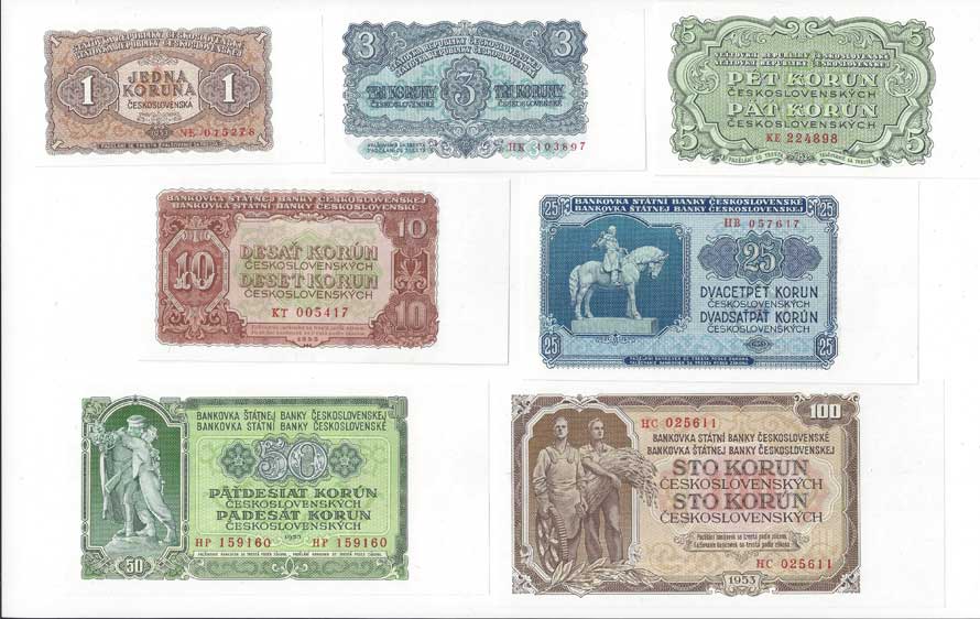 | 317. | 1,3,5,10,25,50,100 Kčs 1953, STC Praha, H:89b2, 90b1, 91b2, 92b2,