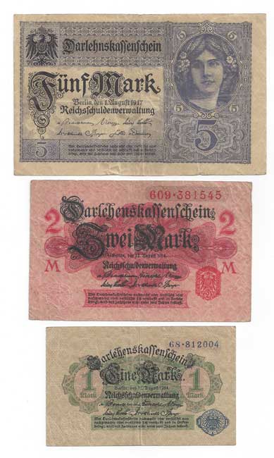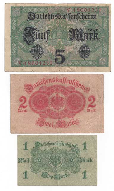 2 Rentenmark 1937, Pick:174, 1/5 bankovky obarvena 5 RM 1942, Pick:186, 2x přel. celkem 5 ks |