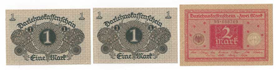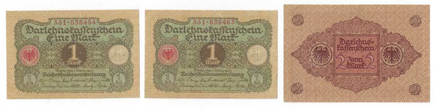 | 329. | 1 Mark 1920-2x, Pick:58, 2 Mark 1920, červená, Pick:59, nep.