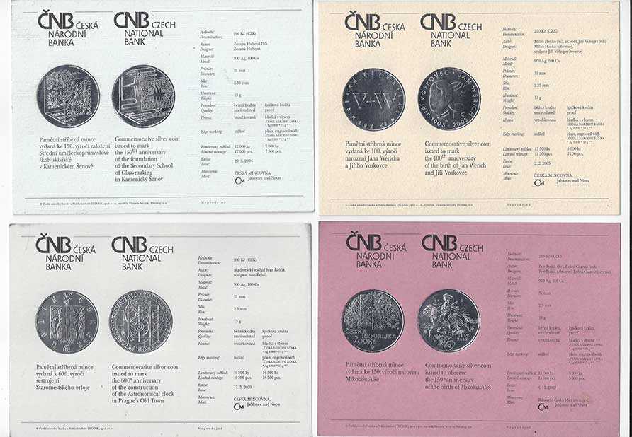 2005-Voskovec a Werich, 2010-Staroměstský orloj, 2002-Mikoláš Aleš 2002-Jiří z Poděbrad 5 ks |