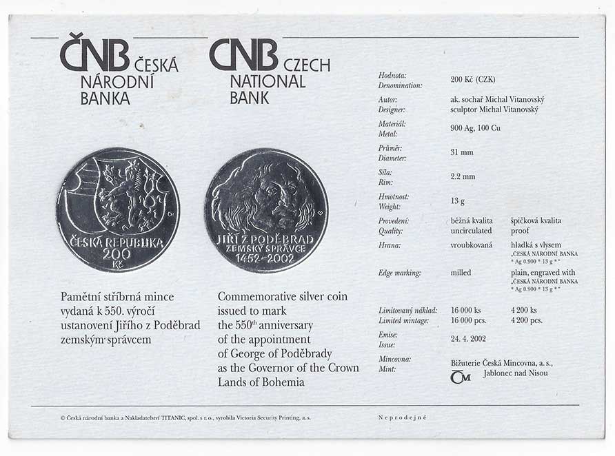 proof, etue, cert., papír.obal, náklad 500 ks |