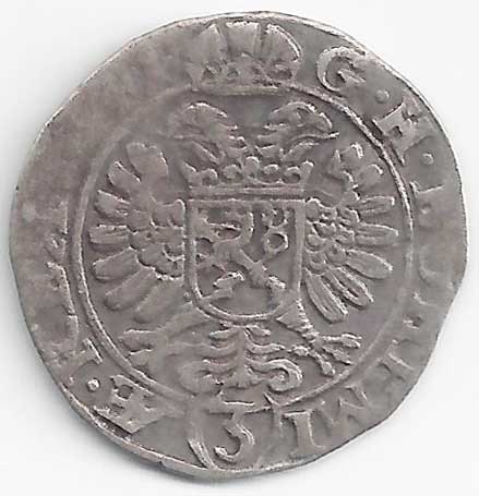 | 64. | 3 Kr. 1641 K. Hora, Geronis, MKČ:1195, typ bez věnce, ned. | 2/2 | 300,- | 360,- |