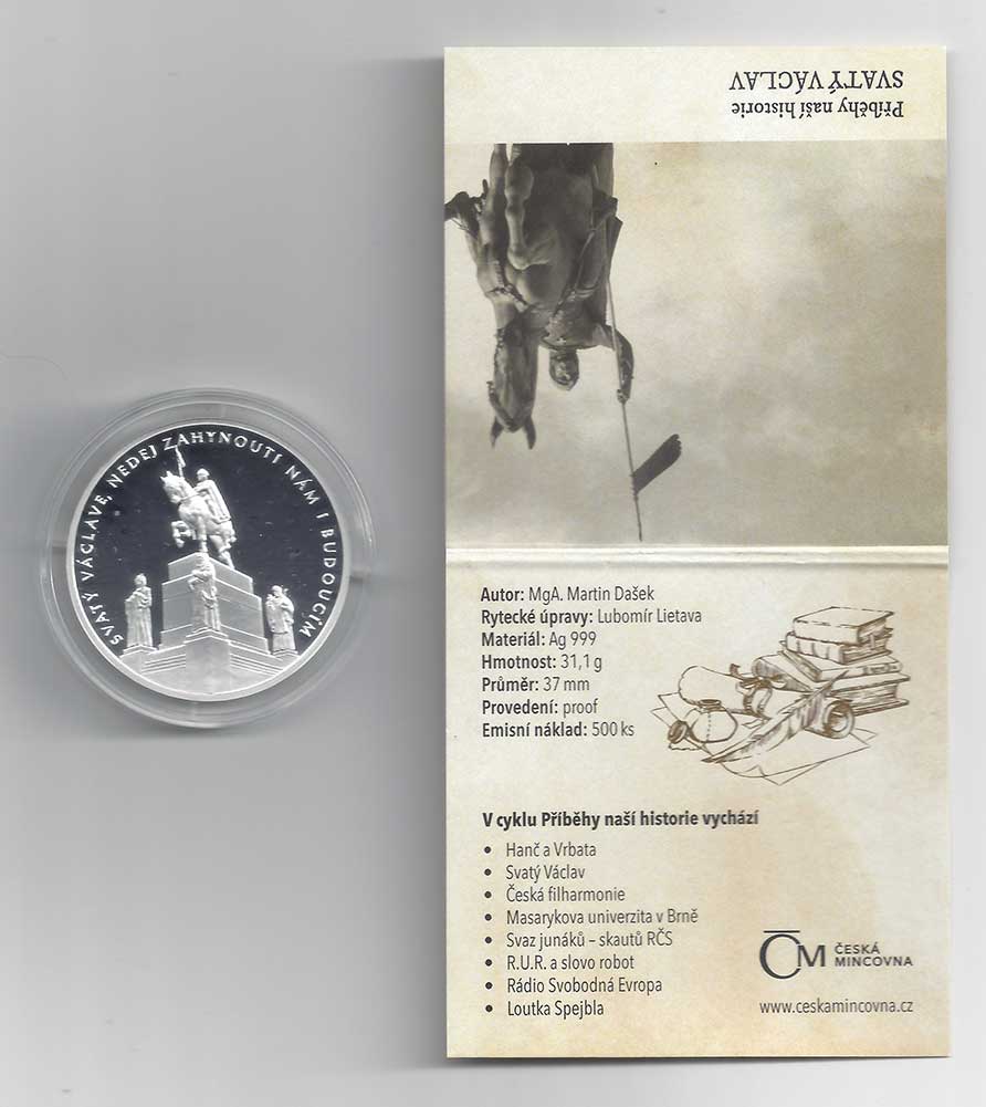 | 67. | Med.ze série Příběhy naší hstorie, sv.Václav, Ag 999, 31,1 g, 37 mm
