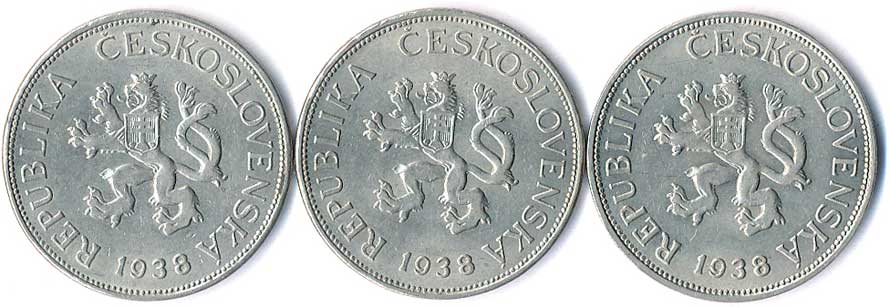 | 409. | 5 Kč 1938, 3 varianty, vlnovky z Av., vlnovky z Rv., vlnovky u sebe, 3ks | 0-1 | 260,- | 260,- |