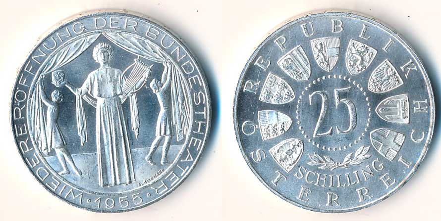 | 856. | 25 Schilling 1955, Národní divadlo, Ag, 13g | 0/0 | 230,- | --.- |