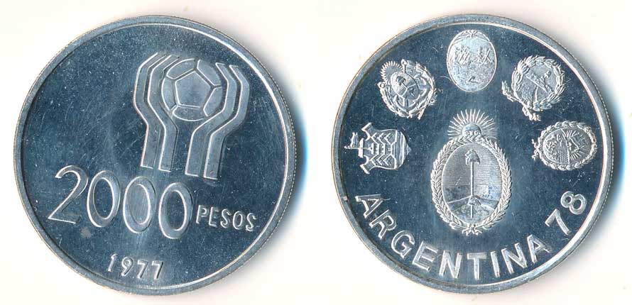 | 998. | 2000 Pesos 1977, Mistrovství světa ve fotbale, Ag, 15 g | 0/0 | 320,- | --.- |