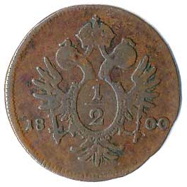 | 286. | 1/2 Krejcar 1812 B | 1-1- | 70,- | 220,- |