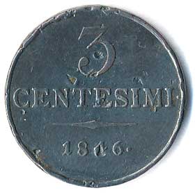 | 245. | 3 Centesimi 1846 M, poťukané | 1/1 | 220,- | 240,- |