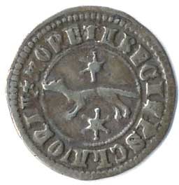 patriarchální kříž, tzv. "Kuní denár", vzácnější ražba |
