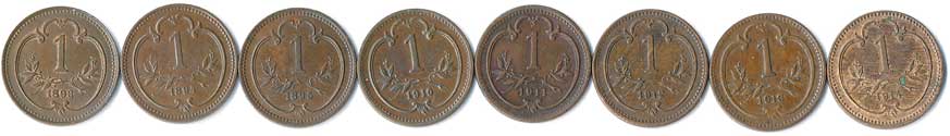 | 333. | 1 Haléř 1893,94,95,1910,11,12,13,14, 8ks | 0-1 | 160,- | 160,- |