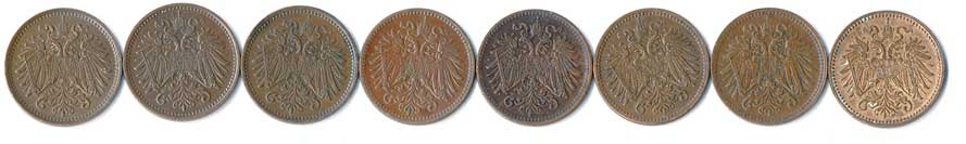 | 340. | 1 Haléř 1898,1916, 2 Haléř 1897,98,1903,05,07,09,13, 20 Haléř 1914, 11ks | 1-1- | 320,- | 320,- |