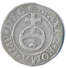 | 708. | 1/2 Batzen 1577, poslední posmrtná ražba s titl. Maxmilián II. 1564-1576,
