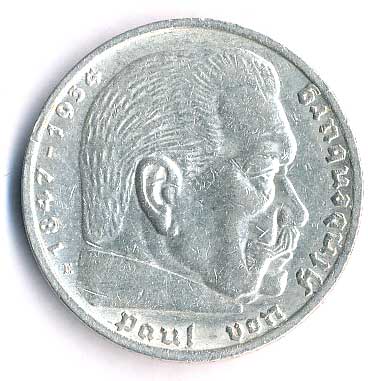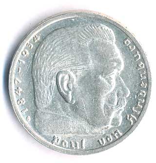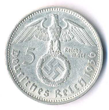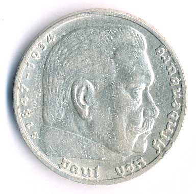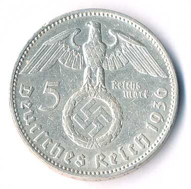 | 786. | 5 Mk. 1936 J, Hindenburg, svastika | 0-1 | 360,- | --.- |