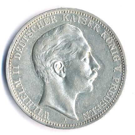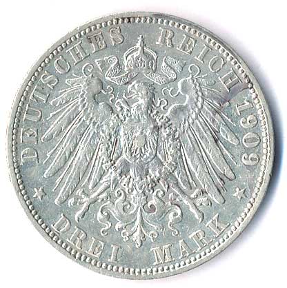 | 780. | 3 Mk. 1909 A, Prusko, Wilhelm II. | 1/1 | 400,- | --.- |