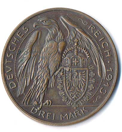 | 784. | 3 Mk. 1913, Prusko, Wilhelm II., zkušební ražba, sign.Karl Goetz | 1/1 | 1800,- | --.- |