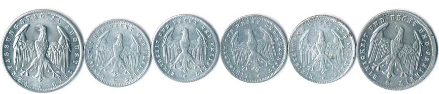| 792. | 3 Mk. 1922 A, 200 Mk.1923 A,D,E,G, 500 Mk.1923E, n.kor., 6ks | 0-1 | 90,- | --.- |