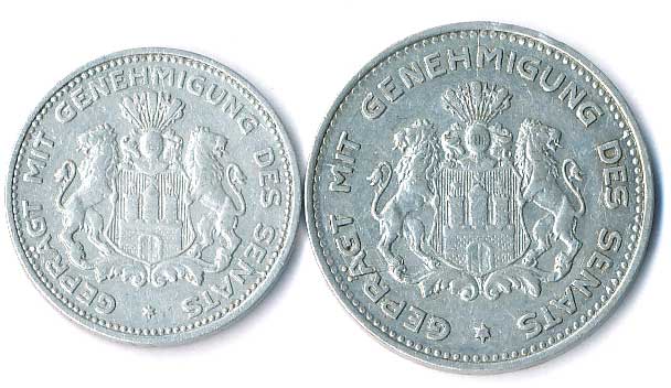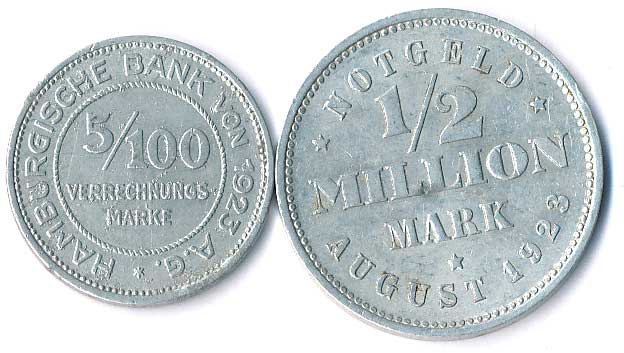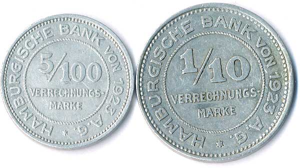 | 794. | 5/100 a 1/10 Verrechnungsmarke 1923, Hamburk, 2ks | 1-1- | 100,- | 150,- |