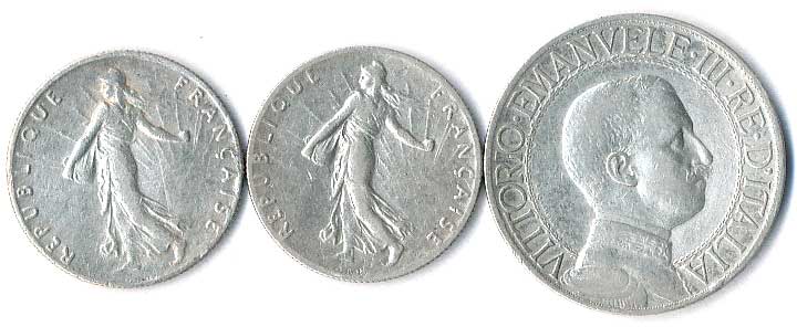 | 841. | 1 Lira 1913, Francie, 50 Centimes 1917,1918, 3ks | 1-1- | 220,- | --.- |