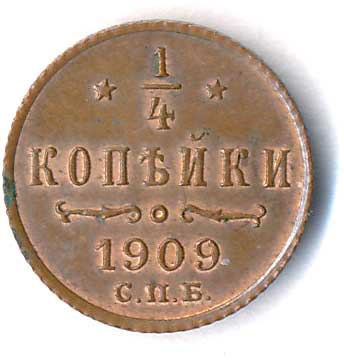 | 884. | 1/4 Kopějka 1909, začínající patina | 0/0 | 800,- | 800,- |