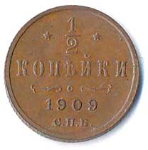 | 885. | 1/2 Kopějka 1909, patina | 0/0 | 70,- | --.- |