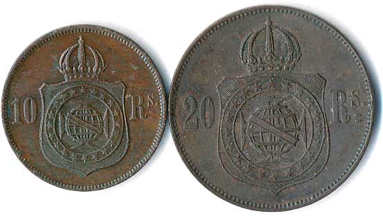 | 961. | 10 Réis 1869, 50 Reis 1869, Pedro II., n.hry, 2ks | 1/1 | 100,- | 100,- |