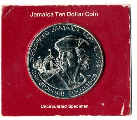 | 966. | 10 Dollars 1975, Kryštof Kolumbus, objevení Jamajky 4.5.1494 | 0/0 | 150,- | 190,- |