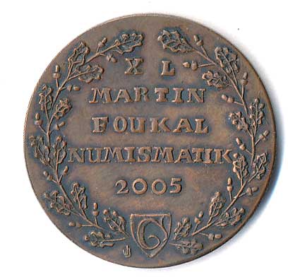 PF, z něho vystupující jména, opis IN NUMMIS VERITAS, Br30, (Oppl Vladimír) |
