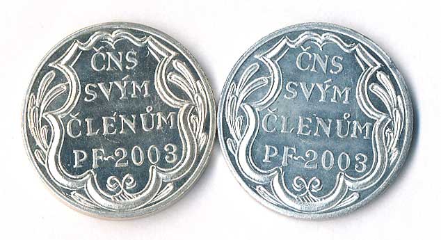 | 1588. | ČNS svým členům PF-2008-nápisy, datace / pregéř razící mince, Ag24/8g,