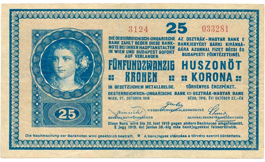 | 2008. | 25 K 1918, s.3124, úzká čísla (13x3mm), Rv. bez potisku (Maďarsko) | 2-3 | 360,- | --.- |