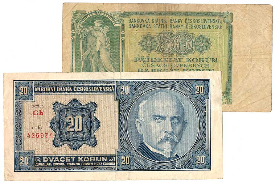 | 2019. | 20 Kč 1926, s.Gh, 50 Kčs 1953, s.NM, 2ks | 2-3- | 80,- | 220,- |