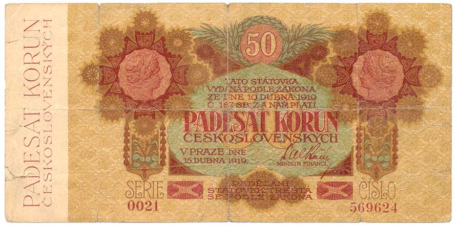 | 2020. | 50 Kč 1919, s.0021, odborně reparovaná | 3-4 | 8000,- | --.- |