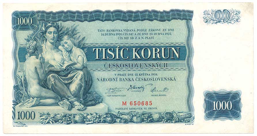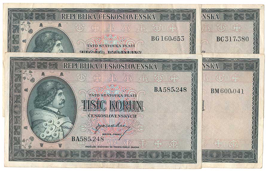 | 2077. | 1000 Kčs (1945), s.BA,BG,BM,BC, 4ks | 2-3 | 360,- | 500,- |