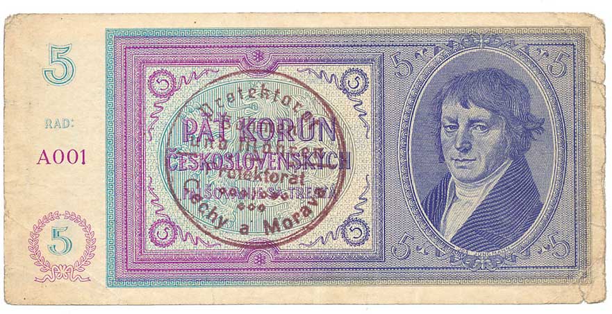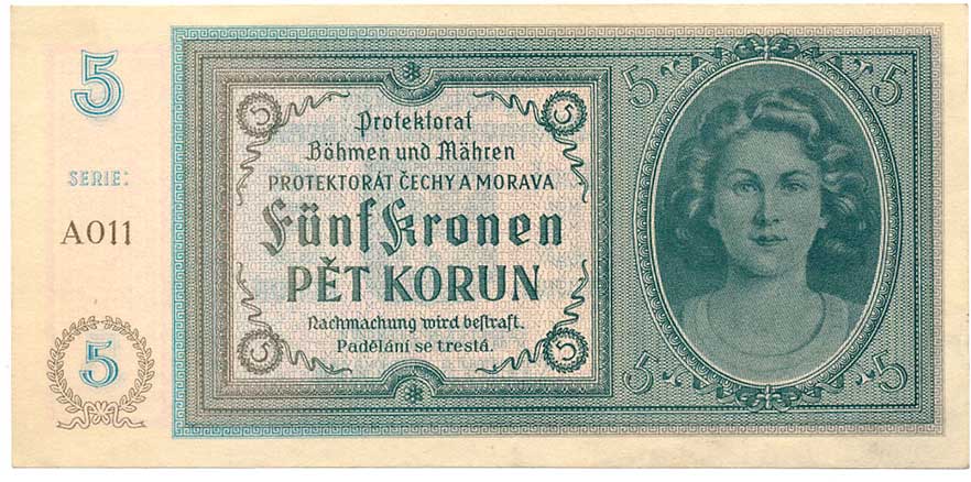 | 2032. | 5 K (1940) s.A012, určená ke skartaci, protektorátní přelepka spořitelny | 5 | 50,- | --.- |