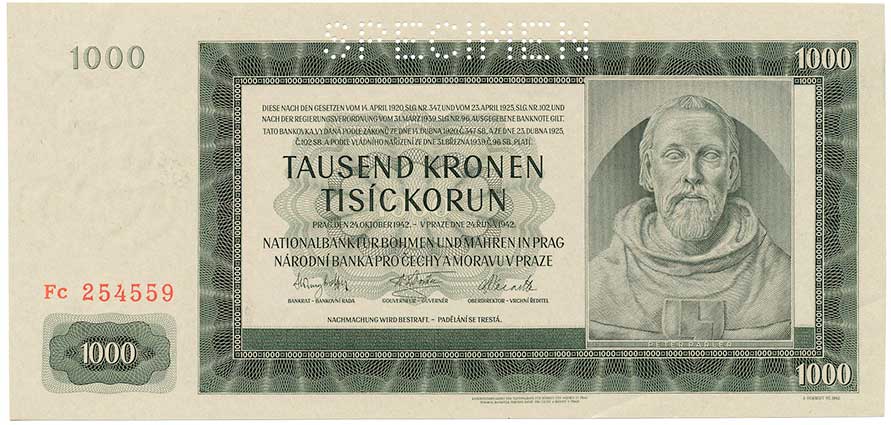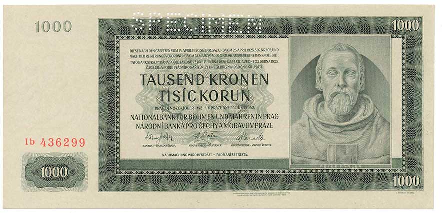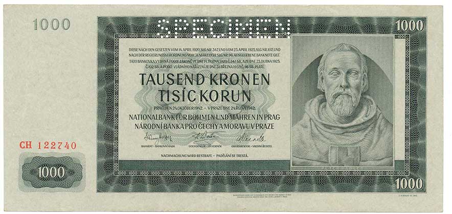 | 2036. | 1000 K 1942 s.CH, I.vydání, SPECIMEN | 1-2 | 400,- | 400,- |