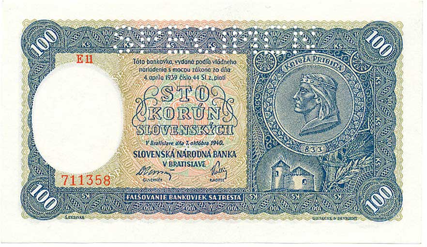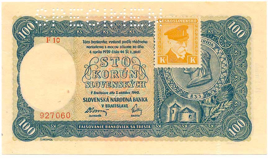 | 2053. | 100 Ks 1940 s.F10, II.vyd., kolek, SPECIMEN, žlutohnědý papír | N | 800,- | 1300,- |