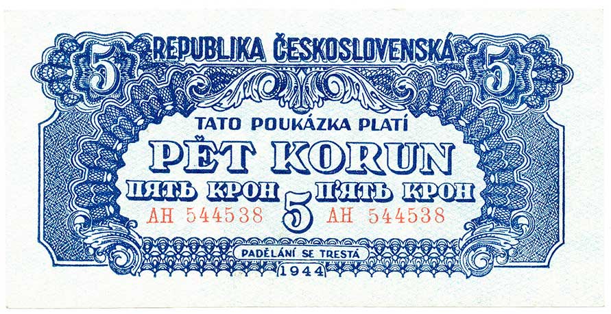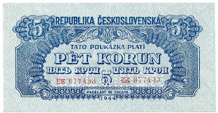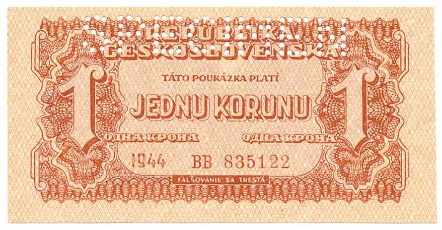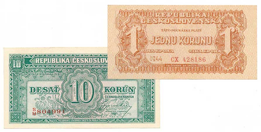 | 2049. | 1 K 1944 s.CX, neperfor., 10 Kčs (1945) s.SM, 3md, 2ks | N | 60,- | 60,- |
