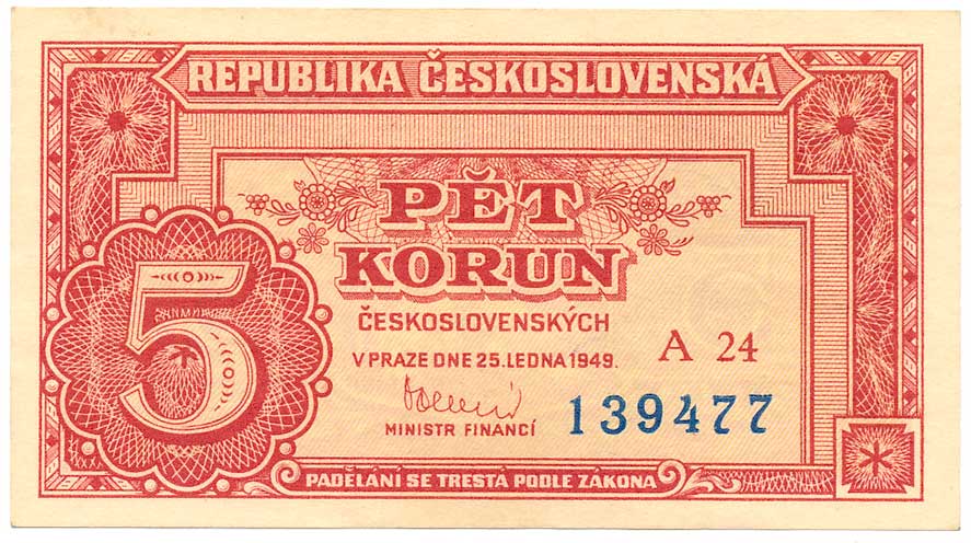 | 2058. | 5 Kčs 1949, s.A24, dvoučíselná řada | N | 100,- | 100,- |