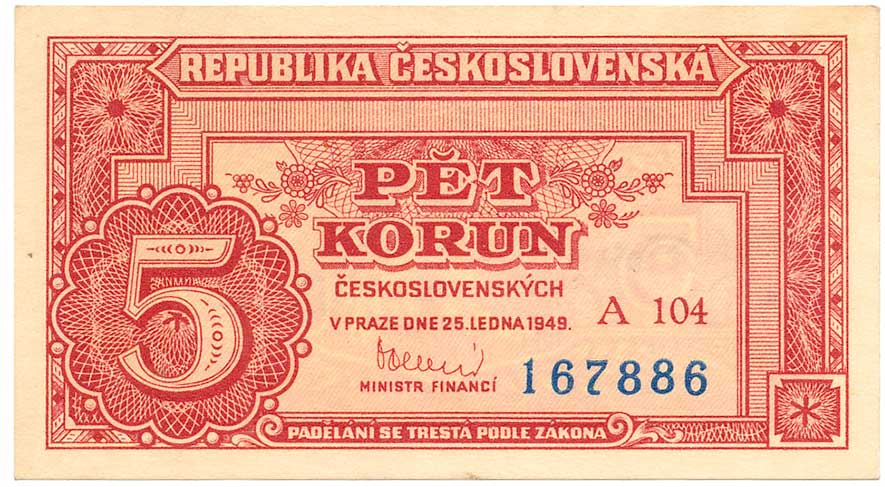 | 2060. | 5 Kčs 1949, s.A104, tříčíselná řada | N | 100,- | 170,- |