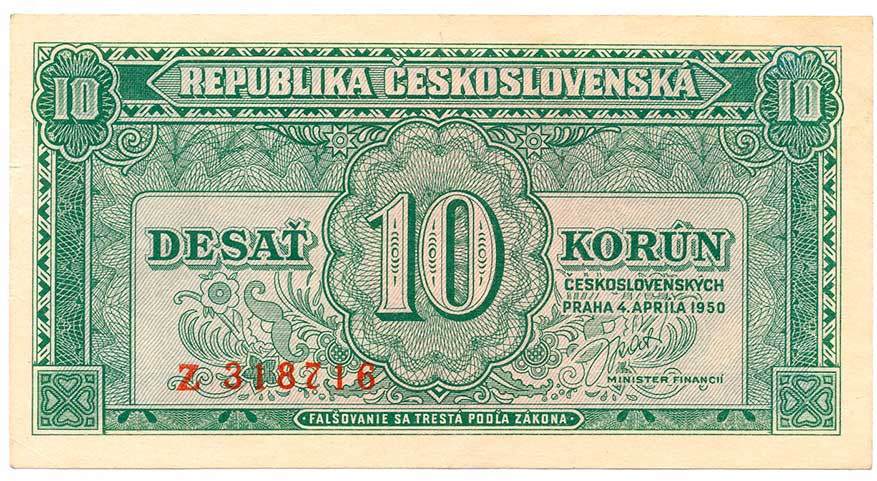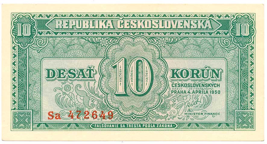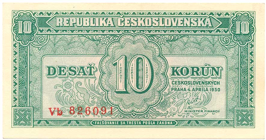 | 2065. | 10 Kčs 1950, s.Ja, dvoupísmenná série | N | 120,- | 160,- |