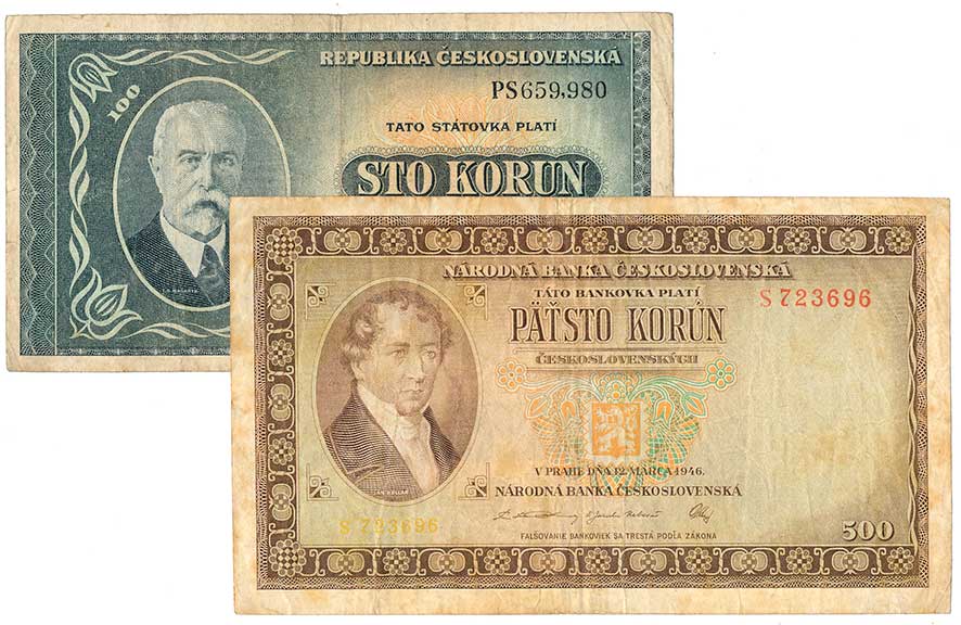 | 2071. | 100 Kčs b.l. (1945), s.PS, 500 Kčs 1946, s.S, 2ks | 3 | 60,- | 200,- |