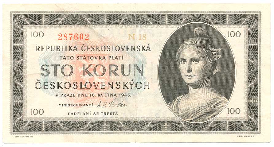 | 2073. | 100 Kčs 1945 s.N18, vlevo nahoře šmouhy | 1- | 300,- | 300,- |