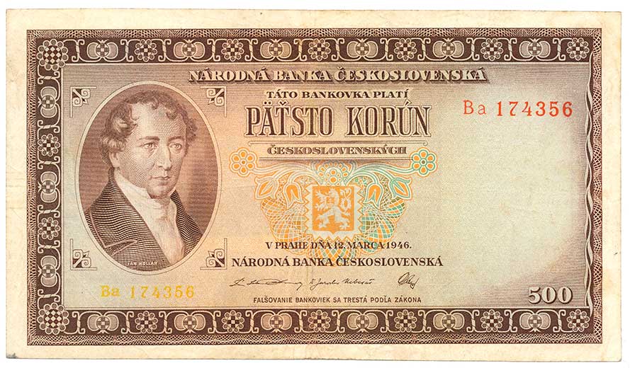 | 2074. | 500 Kčs1946, s.Ba | 2- | 600,- | 600,- |