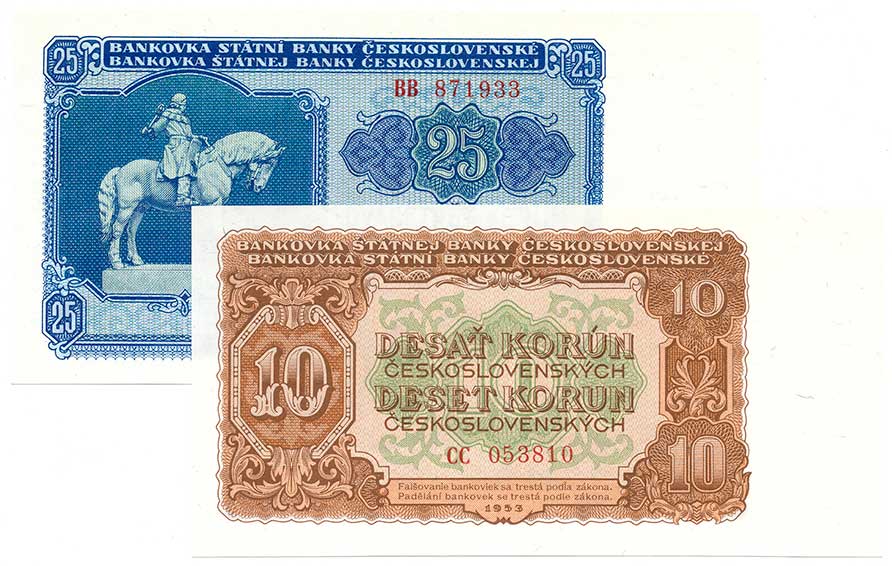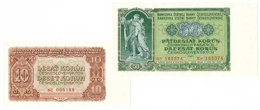 | 2091. | 10 Kčs 1953 s.NC, 50 Kčs 1953, ČSR, 3md, 2ks | N | 80,- | 160,- |