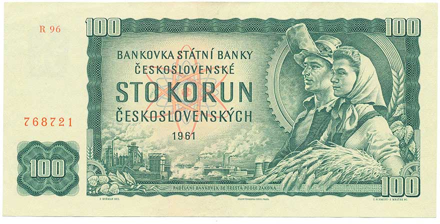 | 2099. | 100 Kčs1961 s.R96, poslední série, ve třech rozích nepatrné ohyby | N | 2000,- | --.- |