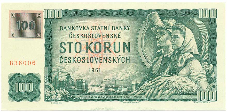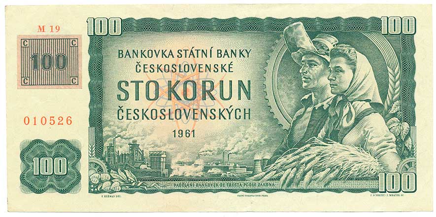 | 2102. | 100 Kčs 1961 s.M19, lepený kolek | 1- | 180,- | 180,- |
