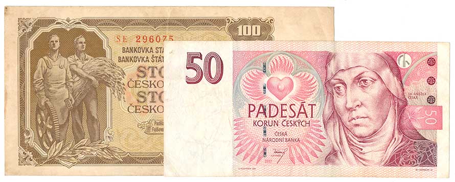 | 2108. | 50 Kč 1997, s.D06, 100 Kčs 1953, s.SE, ČSR, zahnědlá, 2ks | 2-2- | 60,- | 60,- |